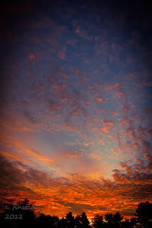 I slid my arm out from under my daughter and grabbed my camera and went downstairs. Indeed, the clouds were absolutely gorgeous. My eyes were so dry I could barely see, but I could tell it was a good sunrise. I fumbled with my camera settings as I had done an indoor shot last night. ISO was set too high. I hit every button on that camera until I finally figured out which one was ISO. Now, I have had that camera for three years. I can usually use it in my sleep! Sunrises are fleeting so I was panicking. Finally I got it figured out, and here are the results: